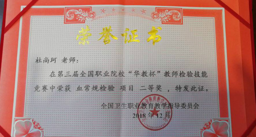 宝剑锋从磨砺出,梅花香自苦寒来!两位教师在繁忙的教学工作之余,克服种种困难,利用节假日、周末及晚上的时间认真准备,刻苦练习,并严格按照大赛的操作技能标准,多次进行模拟赛场演练,最终,在高手如云的赛场上,发挥出色,以精湛的检验技能赛出了我院的风采和水平,获得了多个奖项。