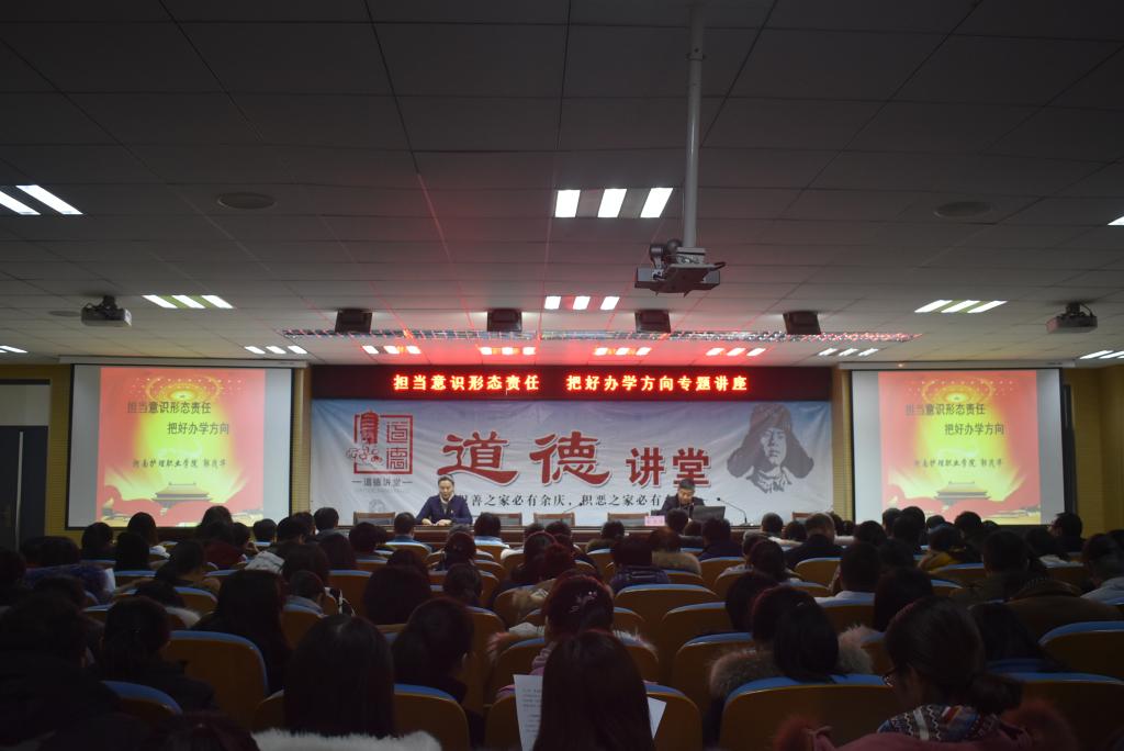 为深入学习贯彻习近平新时代中国特色社会主义思想和党的十九大精神,落实党管意识形态,牢牢把握意识形态工作的领导权、主动权,12月26日下午,我院在学术报告厅举办了“担当意识形态责任 把好办学方向”专题讲座。学院党委副书记、院长郭茂华为大家作专题辅导报告。学院全体党员教师及部分学生党员聆听讲座。