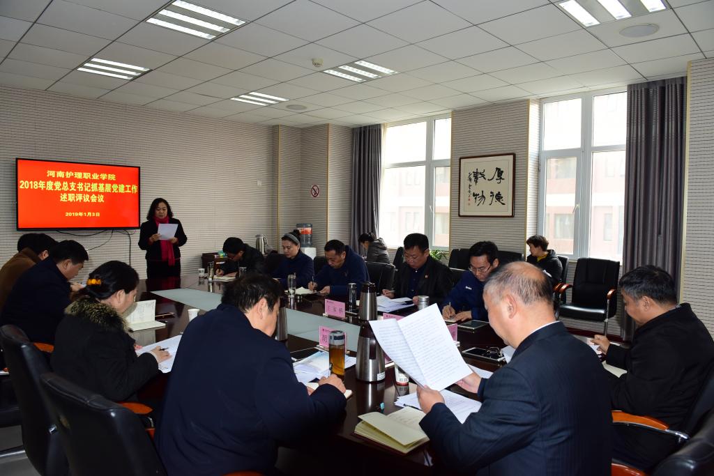 会上,机关党总支书记张玉枝、护理系党总支书记王昆仑、医学技术系党总支书记窦俊峰、公共基础党总支书记张大海分别结合2018年度安排的理论学习、开展的工作、组织的活动、取得的成效、存在的不足及下一步工作计划等方面进行了基层党建工作述职。随后,大家又从党建工作述职的目的是什么?党建工作如何述职?党建工作与年终工作述职有何不同?党建工作述职考评结果如何运用这四方面谈了自己的看法。针对以上内容,与会党委委员分别从政治建设、思想建设、组织建设、作风建设、制度建设、纪律建设六方面对各党总支书记的党建工作述职进行了点评,肯定了成绩,指出了不足,提出了要求。同时,与会人员对各党总支书记的党建述职进行了现场测评。