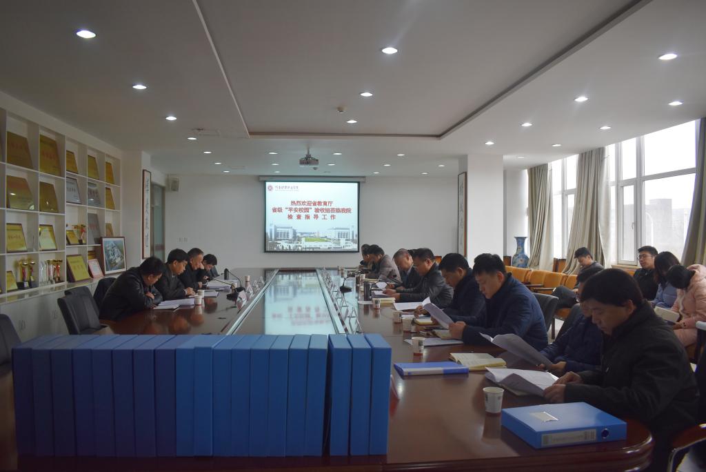 为营造平安校园氛围,维护学院良好教学秩序,学院领导高度重视平安校园创建工作,严格按照河南省平安校园创建标准开展工作,在全体教职工的努力下,通过了省级平安校园创建初审。1月9日上午,省教育厅 “平安校园”检查验收专家组一行4人在省委政法委综治二处副处长于天江的带领下,对我院开展“平安校园”建设检查验收工作。学院党委书记杜天信出席会议,党办、组宣部、院办、保卫处、学生处、后勤处、网络管理中心、思政部、三系等相关部门负责人参加会议,会议由副院长王家桥主持。