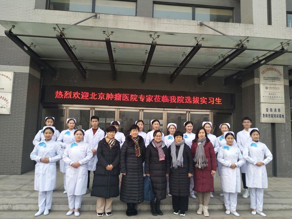1月11日中午,北京肿瘤医院周晶娟主任、谷友惠老师一行两人来我院选拔优秀实习生。教务处处长朱秀敏、护理系副主任骆焕丽、实习实训科科长赵琼热情接待了来访专家,教务处和护理系相关老师全程陪同选拔。