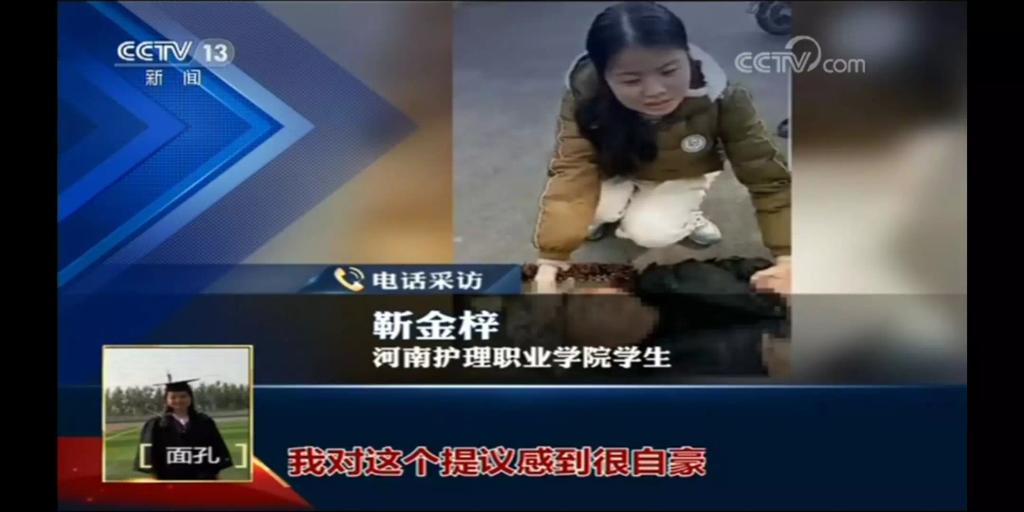 近日,靳金梓同学见义勇为事迹迅速被北京日报、新华社、人民日报、央视新闻、环球时报、中国青年报等150余家媒体竞相报道。其中,3月7日人民日报微信公众号刊发了题为《好人好报!女孩求职归途见义勇为,被应聘单位领导知道了》的文章,阅读量已超10万+,人民日报微博刊发了微评,播放量达600万次。3月8日晚21:45分的《两会1+1》栏目里播放了靳金梓见义勇为被用人单位破格录用事迹,节目中,星空XK体育院长郭茂华接受电话采访,央视记者白岩松作了短评。白岩松说:“我觉得这个姑娘的故事出现在两会期间简直是给这个高等职业院校扩招100万提供了特别强有力的、美好的一种注脚,让大家更乐观的去面对将来,为什么呢?一方面她有绝对的职业技能,她不是莽撞的救助,而是学会了陪护、照料然后等待救护车的来临,另一方面她又有非常棒的职业道德,所谓医德,因此她最后被这个医院等于说是用了一种‘特殊的社会面试’录用了,做什么职业都离不开做人的这个‘德’,做医护尤其这个‘德’要放在第一位。”3月9日CCTV-13新闻频道22:15分《新闻周刊》栏目以《求职路上践行职守,她或免试受职》为题,播了靳金梓同学见义勇为先进事迹,白岩松评论到:“学护理专业并去医院求职的女生在路边看到老人摔倒,她并不是莽撞的急救,而是根据自己学医的经验开始了专业的陪伴,一直到救护车赶到,这其实已经表现了一个学医学生的医德,医院招入她也是自然的事情。”
