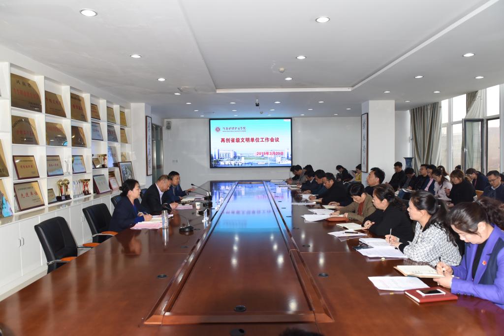3月20日下午,我院召开再创省级文明单位工作会议,党委书记杜天信,党委副书记、院长郭茂华,纪委书记张远出席会议。学院文明单位建设工作领导小组全体成员,各工作组组长、副组长,各工作组联络员,各部门文明单位建设工作联络员参加会议。郭院长主持会议。