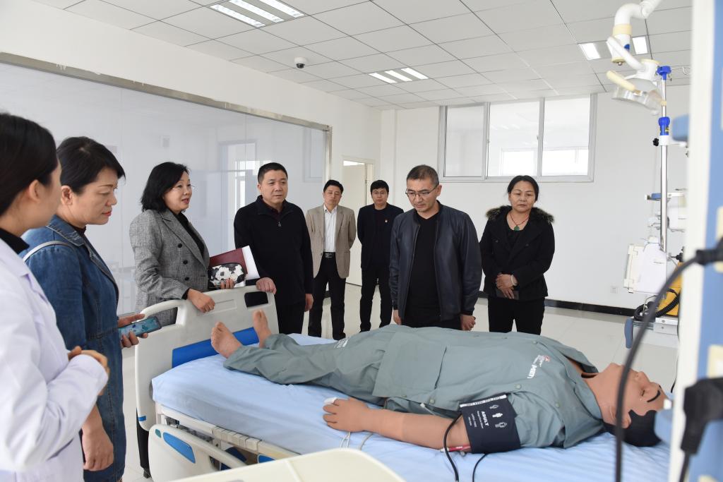 王邦龙院长一行首先参观了我院护理实训楼内的综合技能考核室、心肺复苏实训室、模拟ICU病房等实训场所,对我院先进的实验实训设备、一流的实训条件大加称赞。