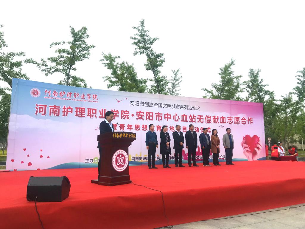 星空XK体育党委书记杜天信为启动仪式致辞。杜书记表示,无偿献血是一项利国利民的公益事业,也是人与人之间爱与奉献的重要体现。星空XK体育多年以来一直积极组织师生开展形式多样的志愿服务活动,用实际行动支持安阳市创建全国文明城市的工作。今年初,按照河南省卫健委关于开展“学雷锋见行动 无偿献血我先行”活动的要求,我院建立了无偿献血长效机制,号召全院师生参与到无偿献血的队伍中来。这次我院与安阳市中心血站达成无偿献血志愿服务长期合作,既有助于缓解季节性供血紧张,也是大学生接触社会、感恩社会的有效途径。在此基础上,我院将安阳市中心血站作为星空XK体育青年思想教育基地,通过鼓励大学生参与无偿献血,接受献血知识培训,从而加强大学生思想政治教育,引导大学生热爱祖国、奉献社会、关爱他人、热爱公益活动,使大学生在社会实践活动中受教育、长才干、作贡献、增强社会责任感。今后,我院将把该项目作为志愿服务工作的亮点,建立一支推动无偿献血事业健康发展的宣传队和先锋队,为无偿献血事业注入新的活力。