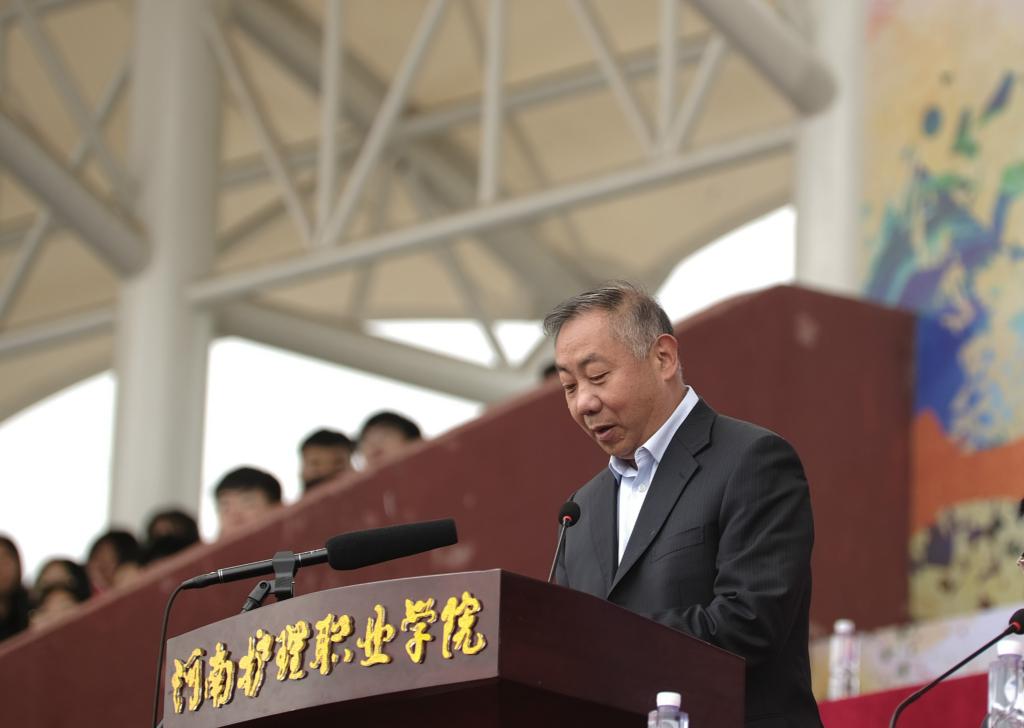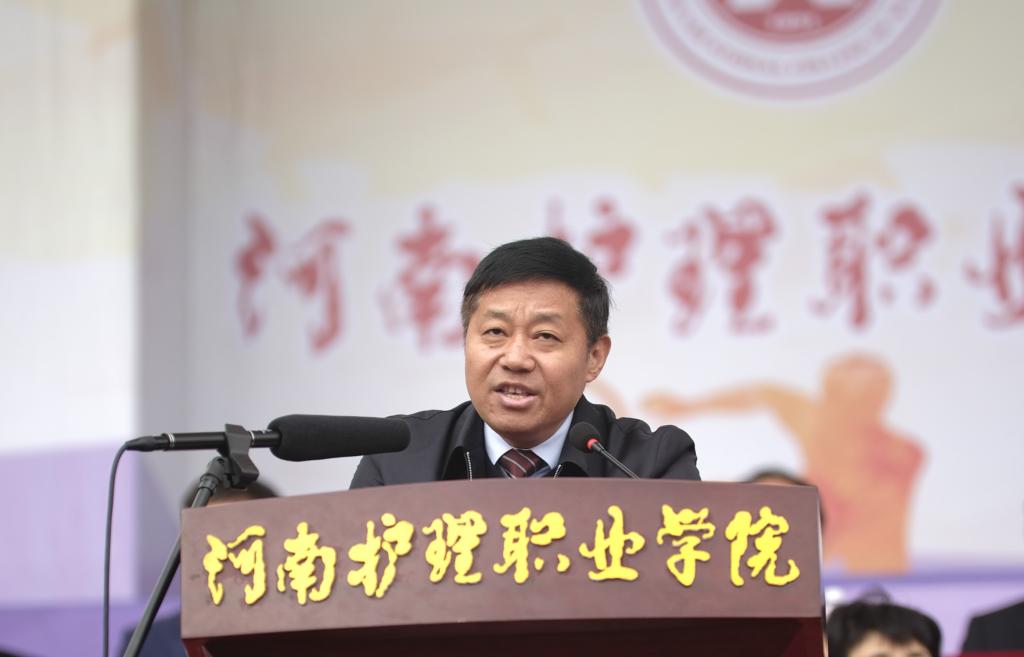 四月芳菲,青春激扬。4月25日上午,学院体育场上彩旗飘扬,人头攒动,星空XK体育第六届运动会在这里隆重开幕。高新区党工委副书记牛福生、安阳市卫生健康委副主任朱淑香、兄弟院校来宾、合作单位代表、学院附属医院濮阳市安阳地区医院院长李铁军等市县医院代表及学院领导杜天信、郭茂华、胡景团、钟会亮、张远出席开幕式并于主席台前就坐。全体师生参加了运动会。开幕式由副院长钟会亮主持。