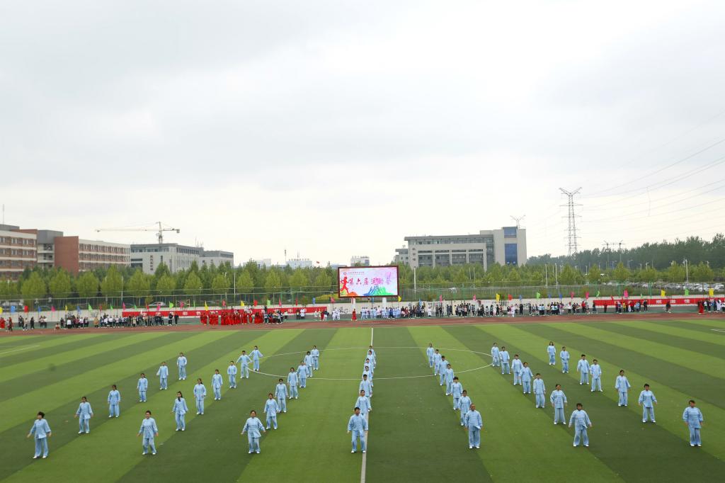 由学院教职工组成的表演团队为我们带来了《八段锦》表演,他们如玉的素手婉转流连,裙裾飘飞,动作柔和优美,动静相兼,诠释我院教职工阴柔之美和阳刚之美的和谐,寓意着河护光辉灿烂的明天。