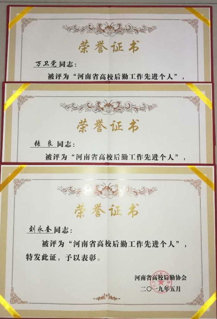 “双达标”创建工作推进会上,董学胜处长发表讲话并宣讲了《全省教育大会》精神。后勤协会一届二次理事会第二次全体会员大会上,大会组委会对河南省高校后勤工作“先进单位”“先进个人”进行了现场表彰。郑州大学等25所高校荣获河南省高校后勤工作“先进集体”称号。我院万卫党、张良、刘永奎三位同志荣获河南省高校后勤工作“先进个人”称号。