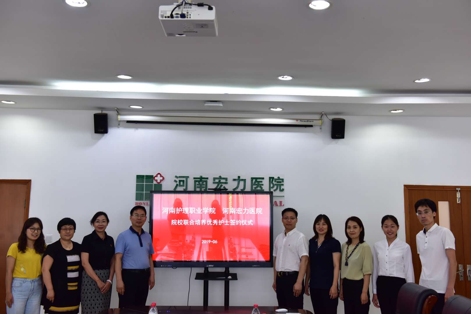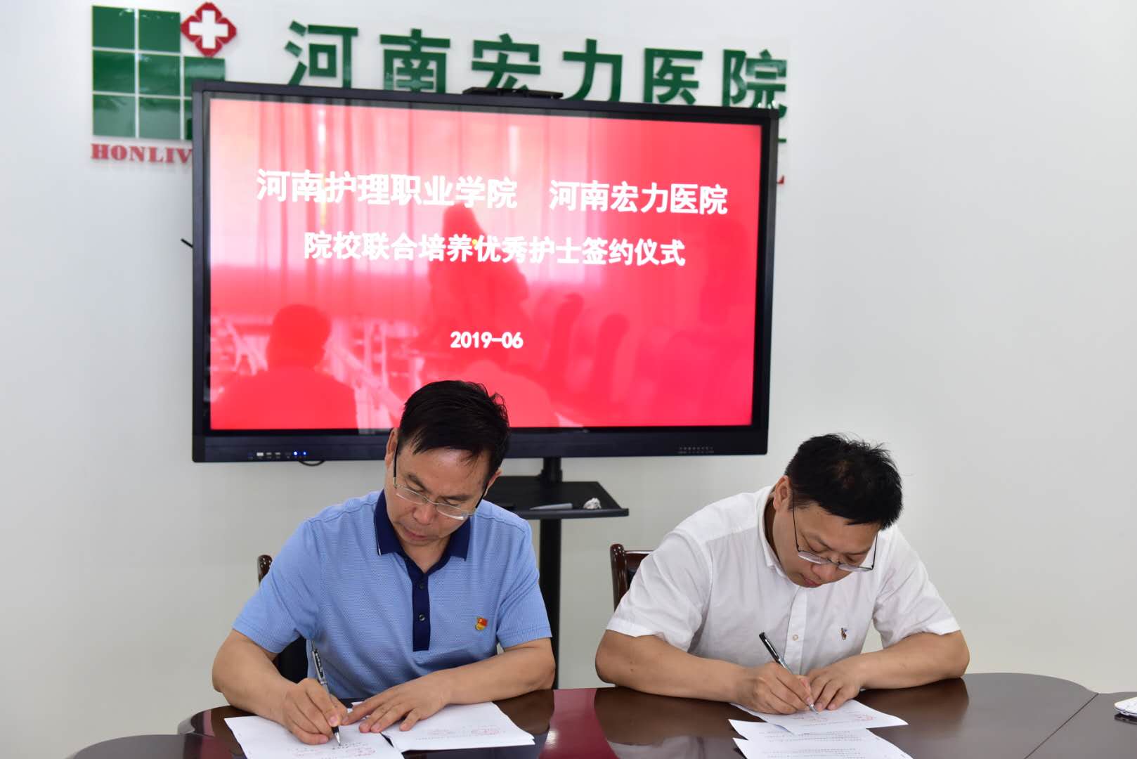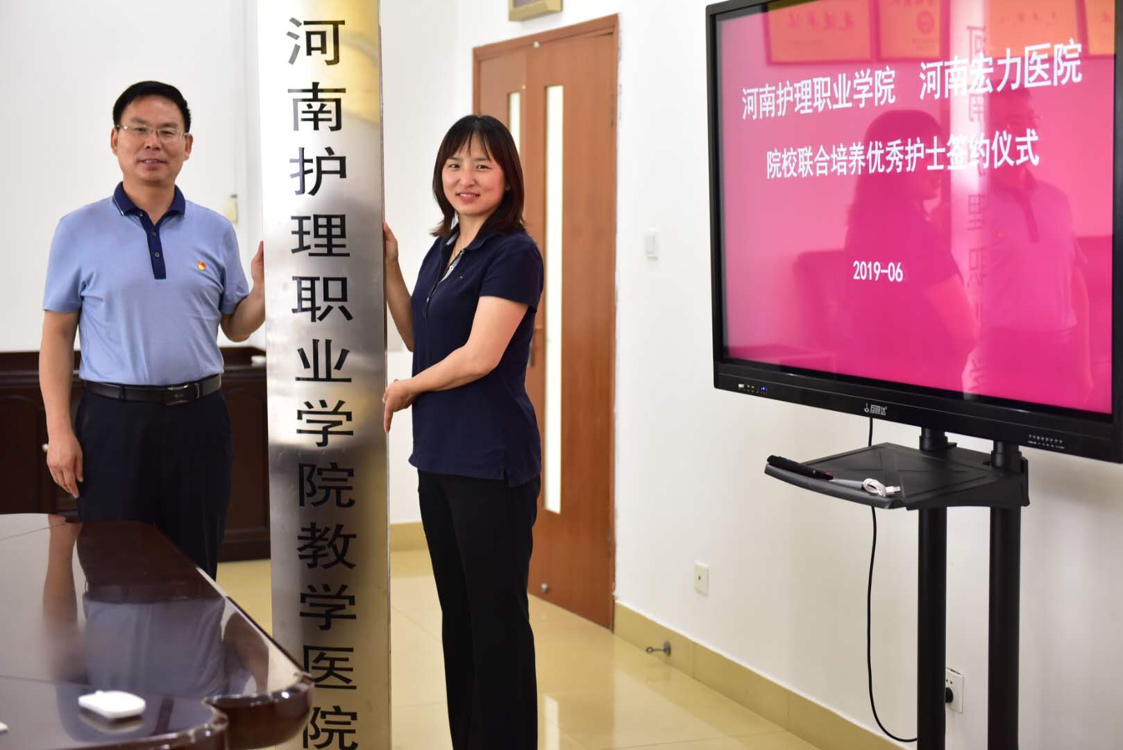 6月14日下午,星空XK体育教学医院签约暨授牌仪式在河南宏力医院举行。河南宏力医院副院长杨磊、人力资源部经理徐成娟、副院长胡娟、副院长卢振丽、人力资源部副经理王萧瑞,星空XK体育副院长钟会亮、教务处处长朱秀敏、护理系主任何敏、“1+1+1”联合育人培养模式教改班辅导员、学生代表等参加仪式。签约授牌仪式由河南宏力医院副院长杨磊主持。