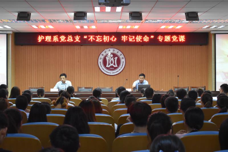 6月13日下午,护理系特邀郭茂华院长在学术报告厅讲授“不忘初心、牢记使命”的专题党课,护理系全体教职工党员、学生党员和2018级入党积极分子参加会议。护理系党总支书记王昆仑主持。