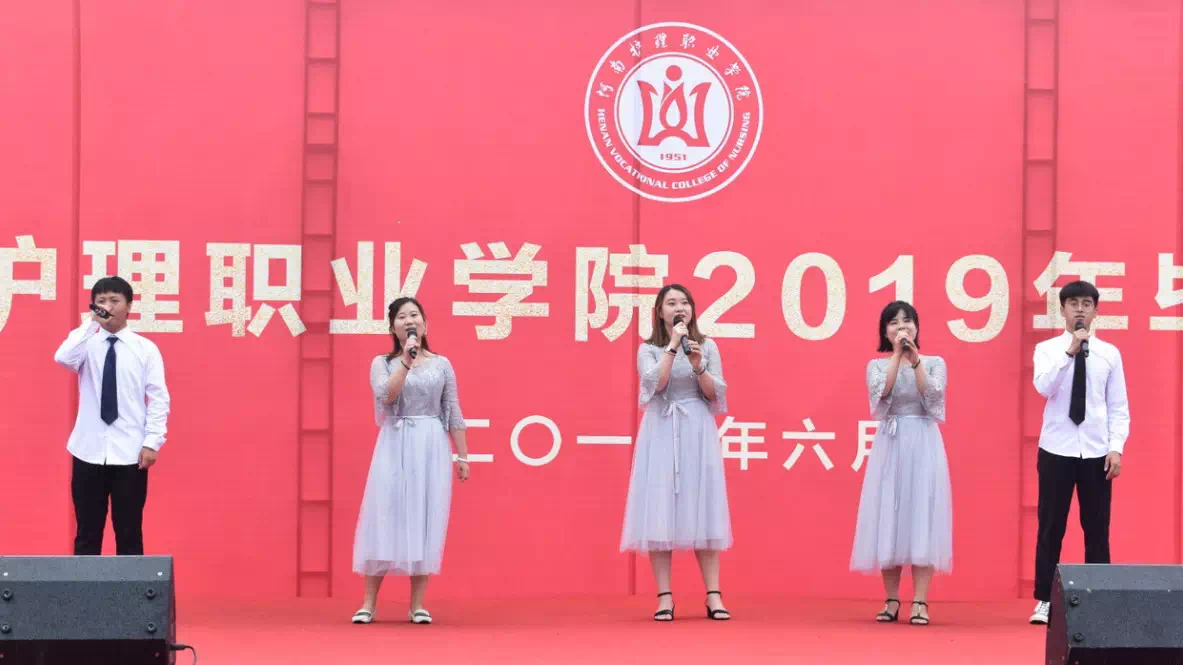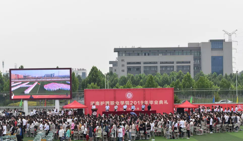 《栀子花开》《当》两首暖场歌曲瞬间让离别的忧伤烟消云散,随后伴随着雄壮的国歌声,我院2019届毕业生毕业典礼拉开帷幕。