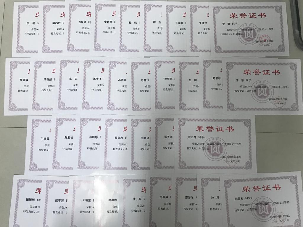 通过开展“诚信伴我成长”主题征文活动,让每一位学生都受到诚信的感召,使大家深刻的意识到在日常生活中要时刻保持诚信处事的原则。此次征文活动不仅展示了同学们的文学素养,还促进了同学们在良性竞争中碰撞出思维的火花,与此同时,将诚信精神通过文字的形式深深植根于同学的思想中。此次活动共从征集到的各类100多件作品中,经各系推荐、学院专家评委评审,最后评选出一等奖9名、二等奖18名、三等奖29名。