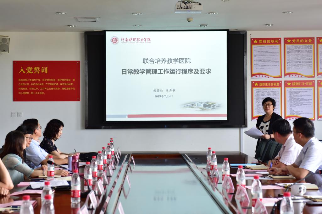 | 教务处处长朱秀敏介绍联合培养教学医院日常教学管理工作运行程序及要求 |