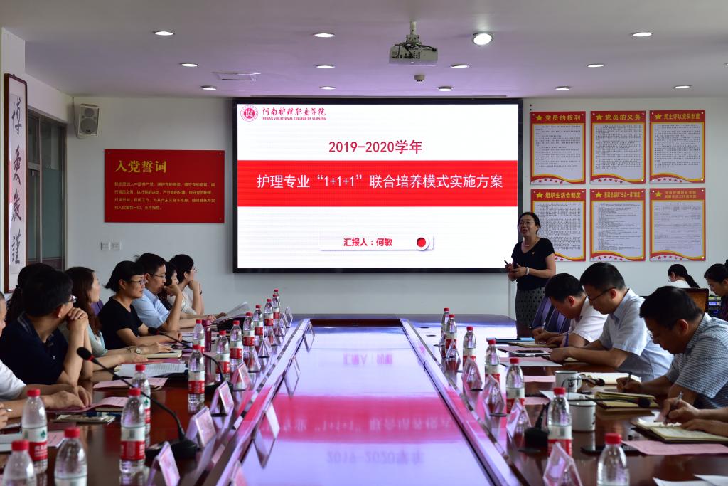 会上,护理系主任何敏详细解读了“1+1+1”联合培养模式和教学工作安排;教务处处长朱秀敏介绍了联合培养教学医院的日常教学运行程序和要求;学生处副处长金志利介绍了学生日常管理、纪律处理、奖(助)学金评定办法等;洛阳正骨医院医教科卫笑颜老师从教学运行、学生管理等方面就联合培养教学工作作典型发言;此外,与会代表还就联合培养中存在的具体问题进行了积极探讨与协商。