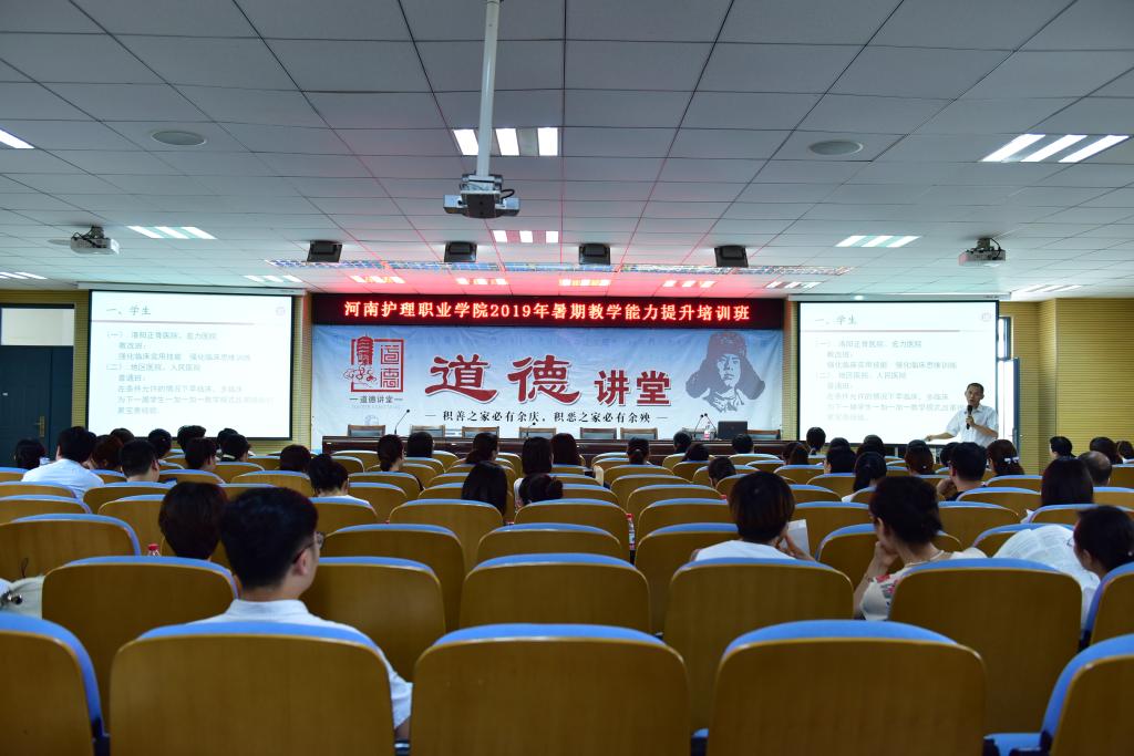 为落实立德树人根本任务,推进医学职业教育改革,进一步深化医教协同、校企合作,提升联合培养教学医院和我院教师教学能力,7月8日至9日,我院在学术报告厅成功举办2019年暑期教学能力提升培训班。副院长钟会亮出席培训开班仪式并致辞,来自河南省洛阳正骨医院、河南宏力医院、安阳市人民医院、安阳地区医院、安阳市口腔医院的84位专家代表及我院全体专兼职教师参加了此次培训。