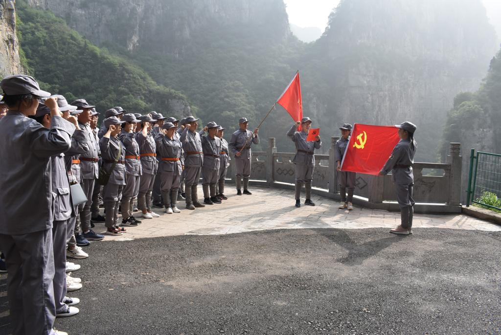 本次培训采取专题讲座、体验教学方式进行。大家聆听了中共济源市委党校、愚公移山干部学院田苗老师《愚公移山精神的传承和弘扬》、魏晓洁老师《共产党人的初心和使命》专题讲座。全体学员到愚公移山故事发源地——王屋山亲身感受愚公移山精神。在巍巍太行山上,全体学员身着八路军军服,重走朱德出太行小道,重温入党誓词,感受老一辈无产阶级革命家肩负重任,不畏艰险的爱国情怀和英雄气概。