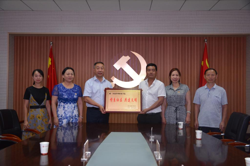 9月4日,许吴村社区党支部书记刘金凤、社区主任申文明带领社区两委干部赵宁宁、申城乡、朱贝贝向我院赠送“情系社区、共建文明”牌匾。