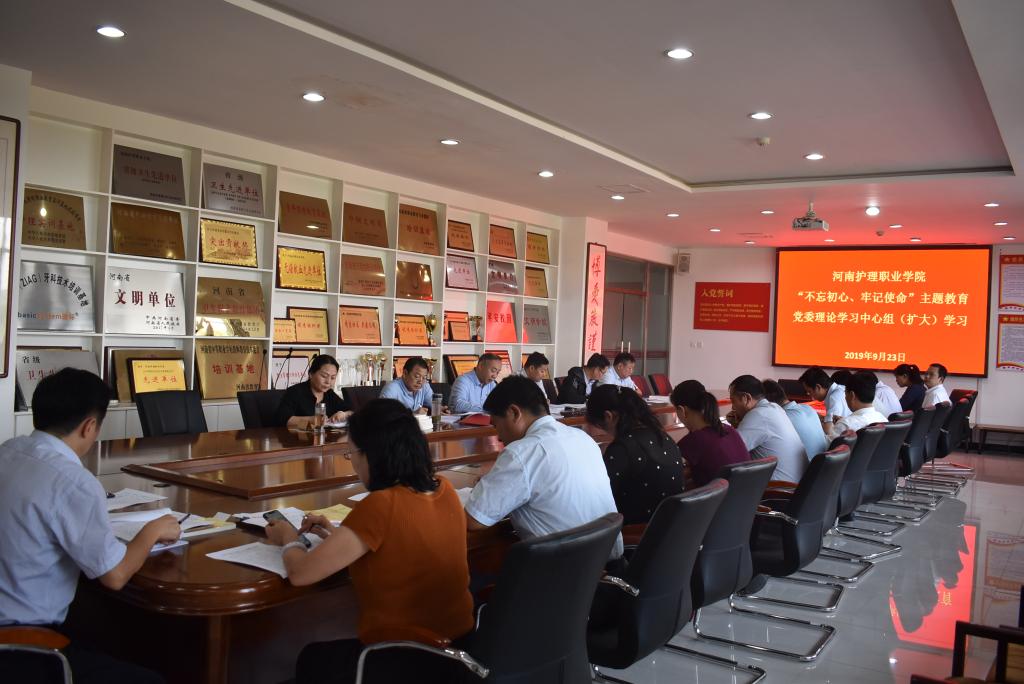 按照学院“不忘初心、牢记使命”主题教育安排部署,9月23日下午,我院在第一会议室召开党委理论学习中心组(扩大)学习会议,进行主题教育第一次集中学习,学院领导班子成员、副处级以上干部及各党总支书记参加学习。会议由党委书记杜天信主持。
