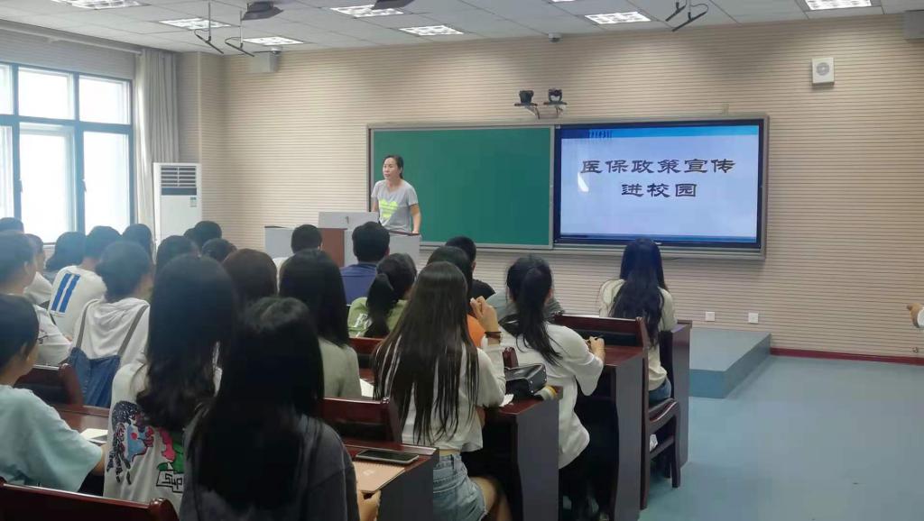 为推进国家全民基本医疗保险目标的实施,保障在校大学生医疗待遇,按照安阳市医保局工作会议精神,结合学院实际情况,9月25日,医务室、学生处及各系共同协作,在学院护理楼613录播教室对在校大学生进行医保政策专题讲座。