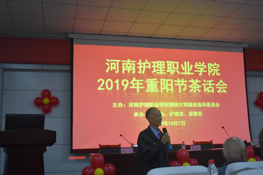 10月7日下午,我院2019年重阳节茶话会在北院区顺利举行。学院领导杜天信、郭茂华、胡景团、钟会亮、王家桥、张远出席。离退休的老领导老专家老教师、学院文明单位建设工作领导小组各工作组长、文明办、护理系、退管处、学工部、保卫处、医务室、学生志愿者参加了本次茶话会。
