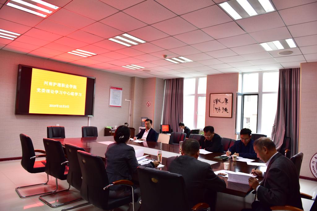 10月9日上午,我院召开党委理论学习中心组专题学习会议,学习习近平总书记在庆祝中华人民共和国成立70周年大会上的重要讲话,党委书记杜天信,党委副书记、工会主席胡景团,副院长钟会亮、副院长王家桥、纪委书记张远及学院主题教育领导小组办公室各工作组组长参加学习。