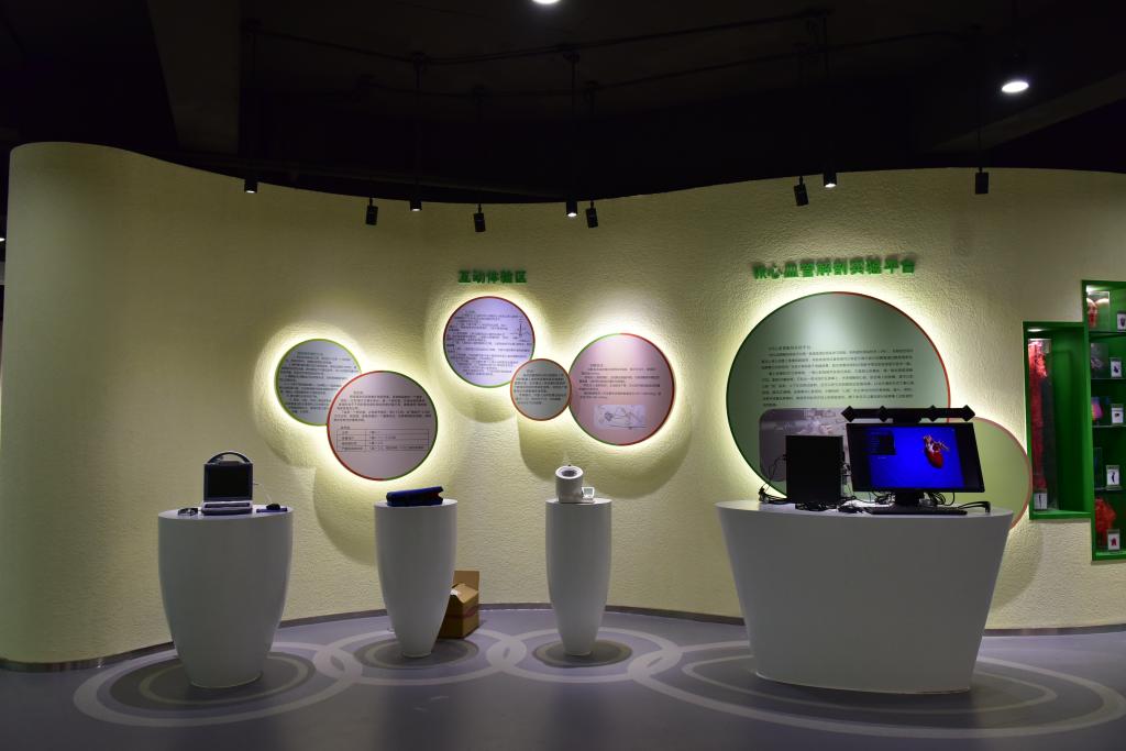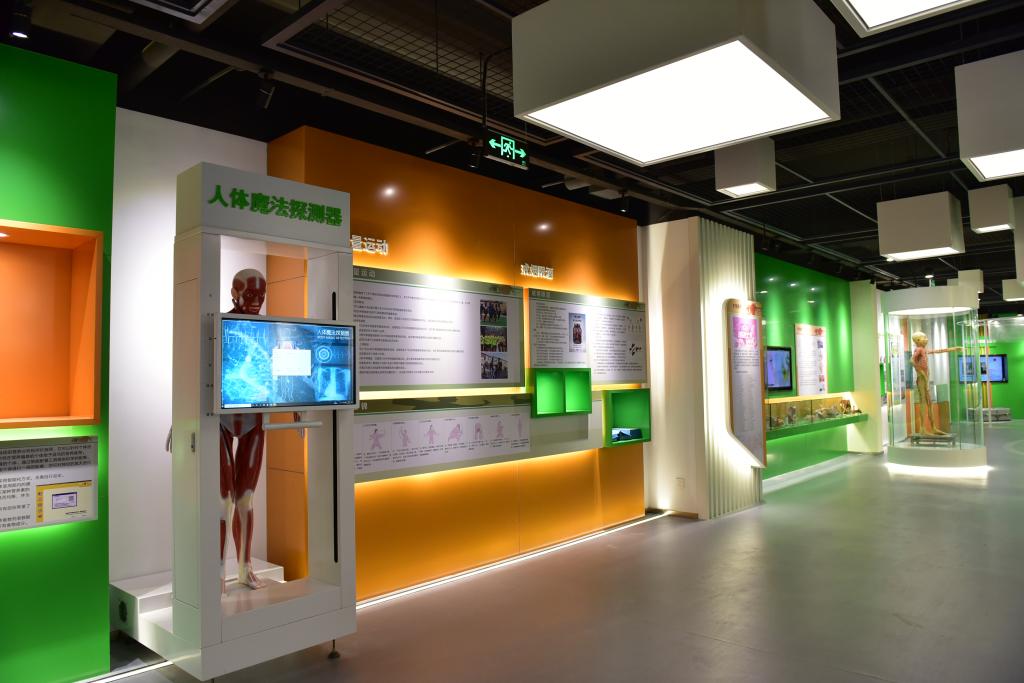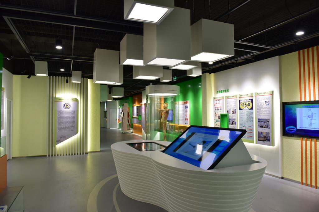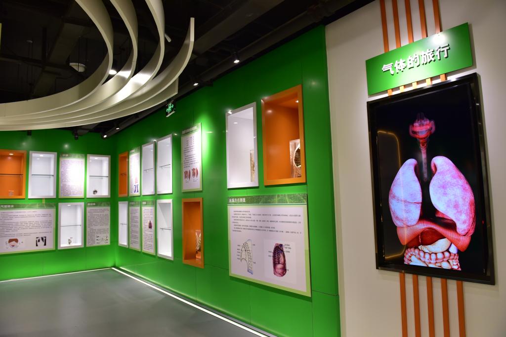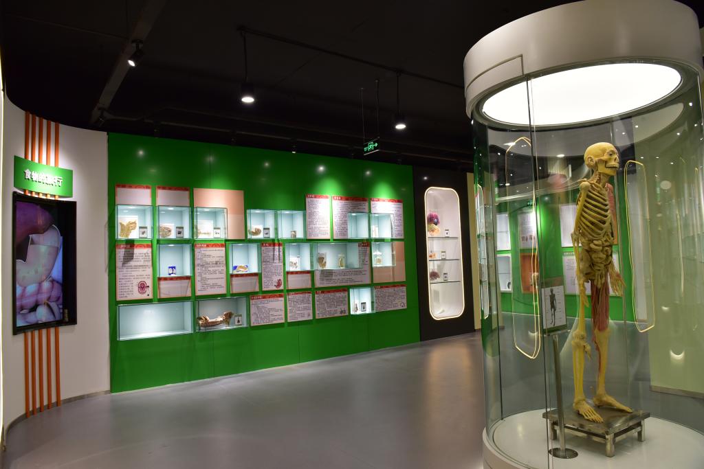 生命健康馆遵循了解人体、敬畏生命、关注健康的建设理念,划分有生命诞生、人体奥秘、呵护健康三大展区。馆内陈列有解剖及病理标本300多件、医学科普展板150多块和数字化多媒体设备29套。陈列标本主要展示正常人体标本和病理标本,科普展板主要展示的各系统常见疾病(病因、预防措施等)、预防保健常识、基本护理操作技术及常用急救技术等,数字化多媒体以视频、动画、VR等数字信息化技术直观、立体、动态展示微观、静态的医学知识,同时为学习参观者提供有体验式、互动式学习情境。