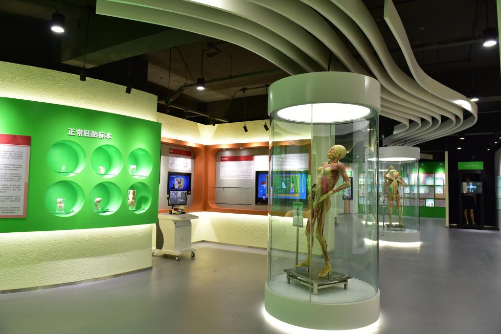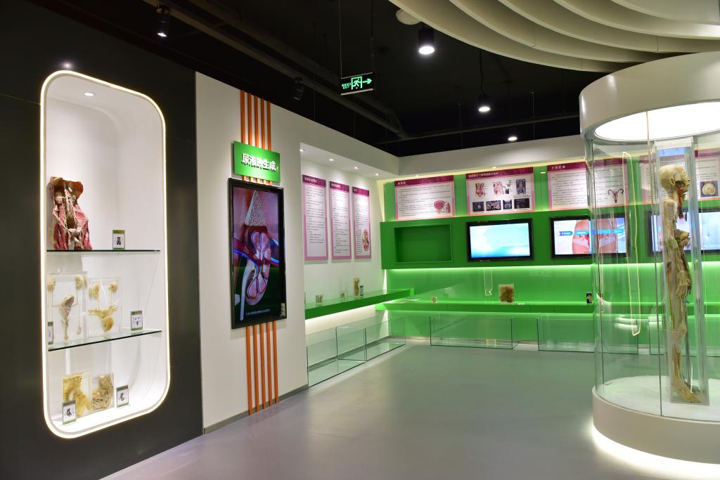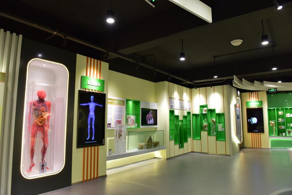 生命健康馆展示内容将基础医学知识与临床医学知识相结合、人体结构将正常人体标本与病理标本相结合,展示形式以传统实物(标本)、图文展板与数字化技术(视频、动画、VR、虚拟现实等)相结合,学习方式将观察阅读与体验互动参与相结合。丰富的展示内容、多元的展示手段,旨在激发学习参观者的学习兴趣,引导学习参观者探究人体结构、理解生命真谛、树立健康生活理念,从而体现在校学生实践教学、业内专家学者学术交流和面向社会大众健康宣教的功能定位。