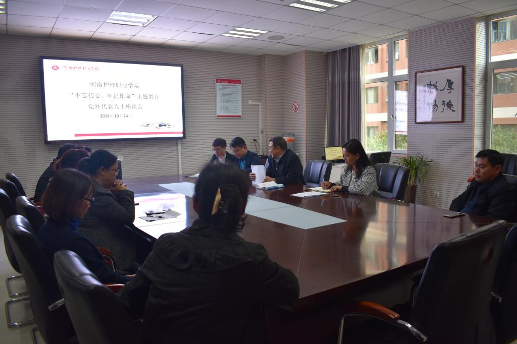 10月24日下午,学院在第二会议室召开“不忘初心、牢记使命”主题教育党外代表人士座谈会。学院党委副书记、工会主席胡景团出席会议,党外高级知识分子、党办、党委组织宣传统战部等相关部门人员参加座谈。会议由党委组织宣传统战部部长郭宏轶主持。