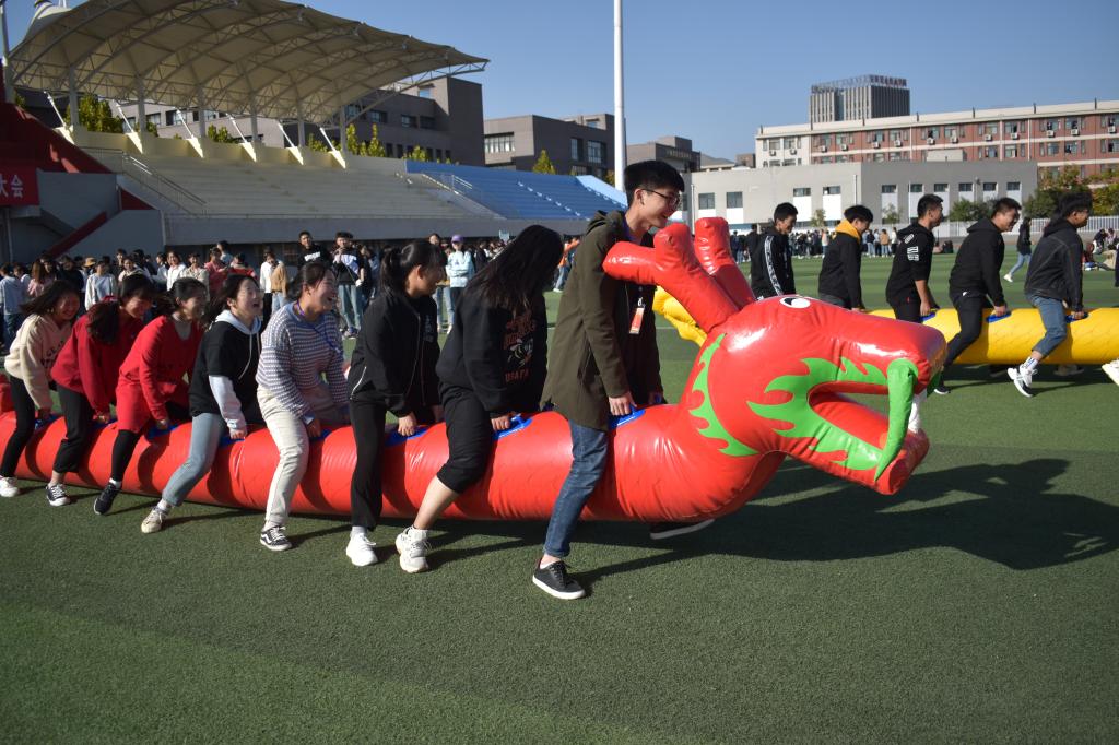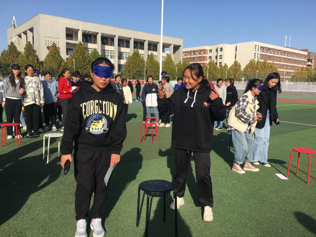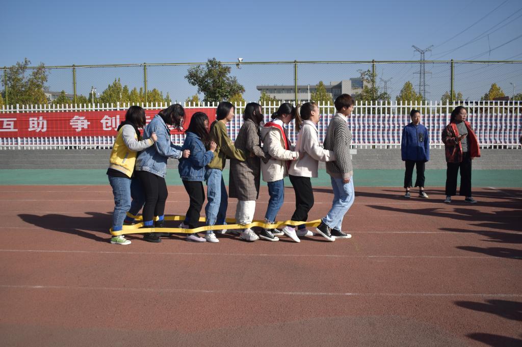 “信任前行”活动中同学们交替蒙眼在同伴的指引下通过障碍、完成任务,帮助同学们体验了同伴间的信任感;“有轨电车”“旱地龙舟”“能量传输”等活动中,团队成员齐喊口号、加油鼓劲,让人体验到了团结一致的团队协作力量。