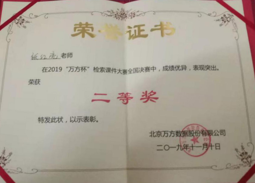 近日,我院图书馆张红亮老师在全国“万方杯”检索课件大赛河南地区初赛中的课件作品“网络搜索引擎”,从众多参赛作品中脱颖而出,经过河南省图书情报工作委员会专家评审的推荐,代表河南地区作品参加全国总决赛,经过激烈角逐,最终斩获总决赛二等奖。