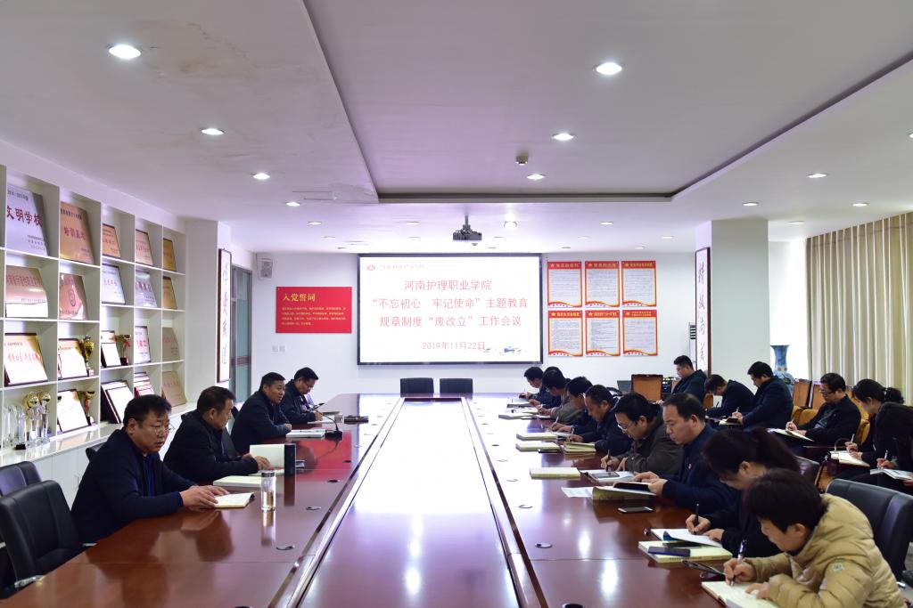 为贯彻落实党的十九届四中全会精神,进一步推进学院治理体系和治理能力现代化,紧密结合“不忘初心、牢记使命”主题教育,11月22日上午,郭茂华院长主持召开学院规章制度废改立工作会议,院领导胡景团、钟会亮、王家桥出席会议,各处室、系部负责人和各党总支书记参加会议。