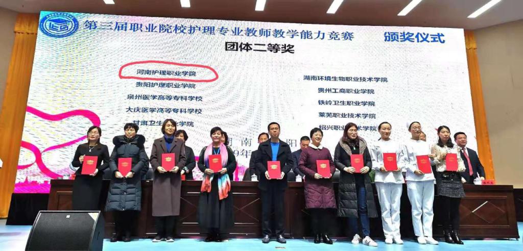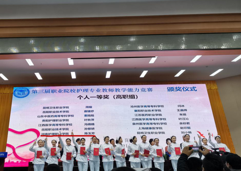11月28日至12月1日,第三届全国职业院校护理专业教师教学能力大赛在湖南省岳阳职业技术学院举行。经过激烈角逐,我院代表队荣获团体二等奖第一名,这是我省参赛院校取得的最高奖项,其中,护理系教师陈玉芳荣获一等奖,任宁荣获三等奖。两位教师不忘教育初心,牢记育人使命,用实际行动和优异成绩为学院主题教育增光添彩。