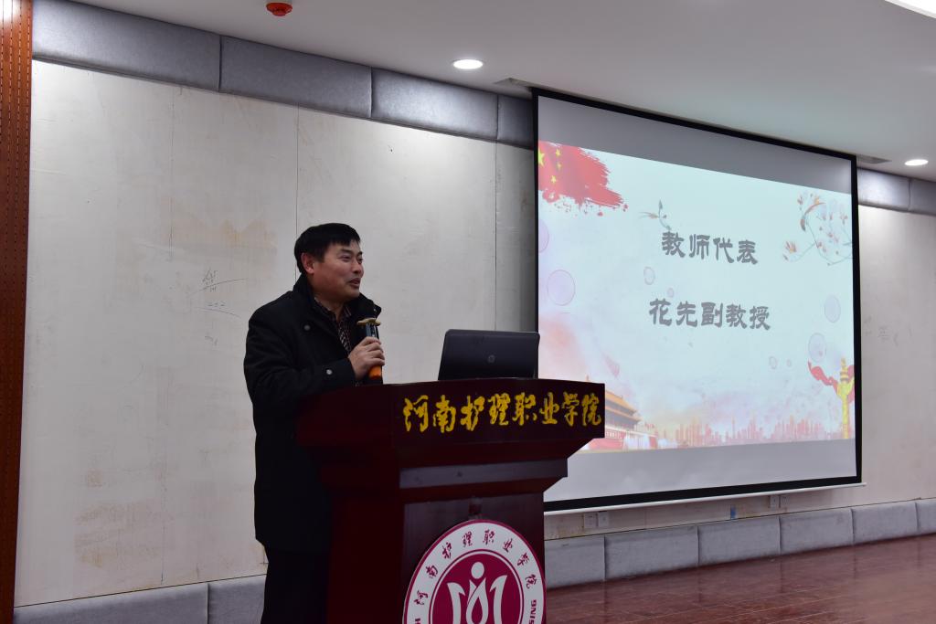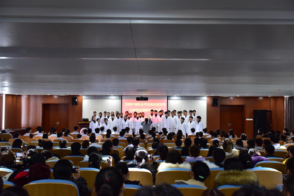 大会在学生合唱团演唱的《国家》曲目中拉开了序幕,激昂的歌声,优美的旋律抒发了同学们对祖国的热爱。学生代表李梦迪表示,会全力以赴准备此次考试,为河护争光添彩。教师代表花先教授承诺,此次是学院临床医学系首次参加全国解剖学联考,是展示学院精神风貌和教育教学成果的关键,作为教师,定会加强对学生的辅导工作,认真讲好每一个知识点,分析好每一个考点,解答好每一个难点,争取联考取得佳绩。