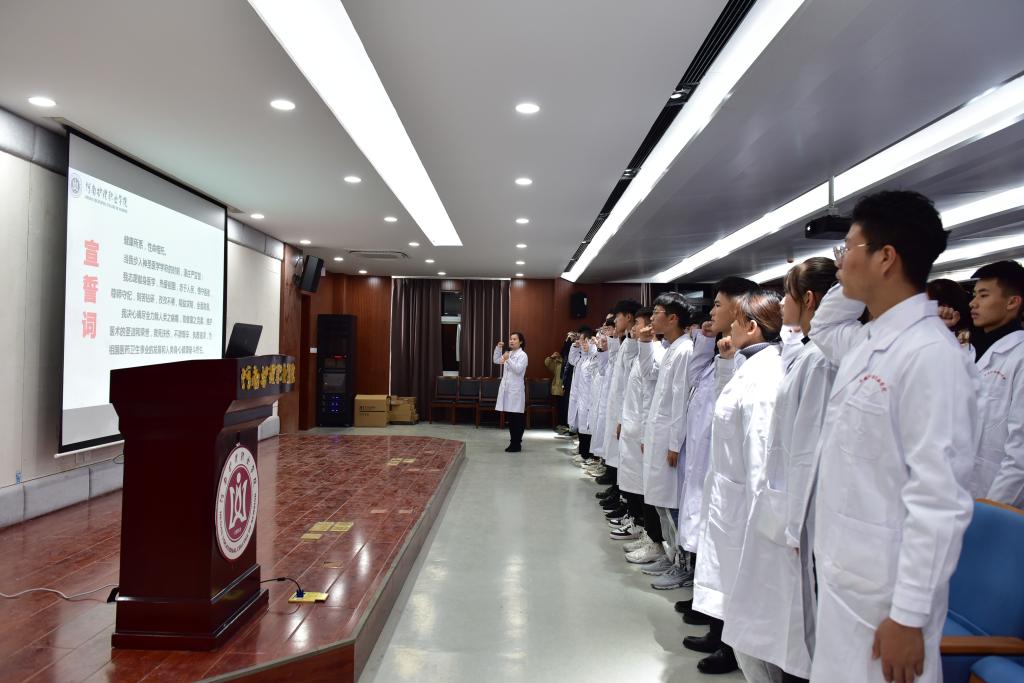 会议最后,由临床医学专业筹备组赵琼科长领誓,全体学生庄严宣誓,表示要不断努力为祖国医药卫生事业的发展和人类身心健康奋斗终生。
