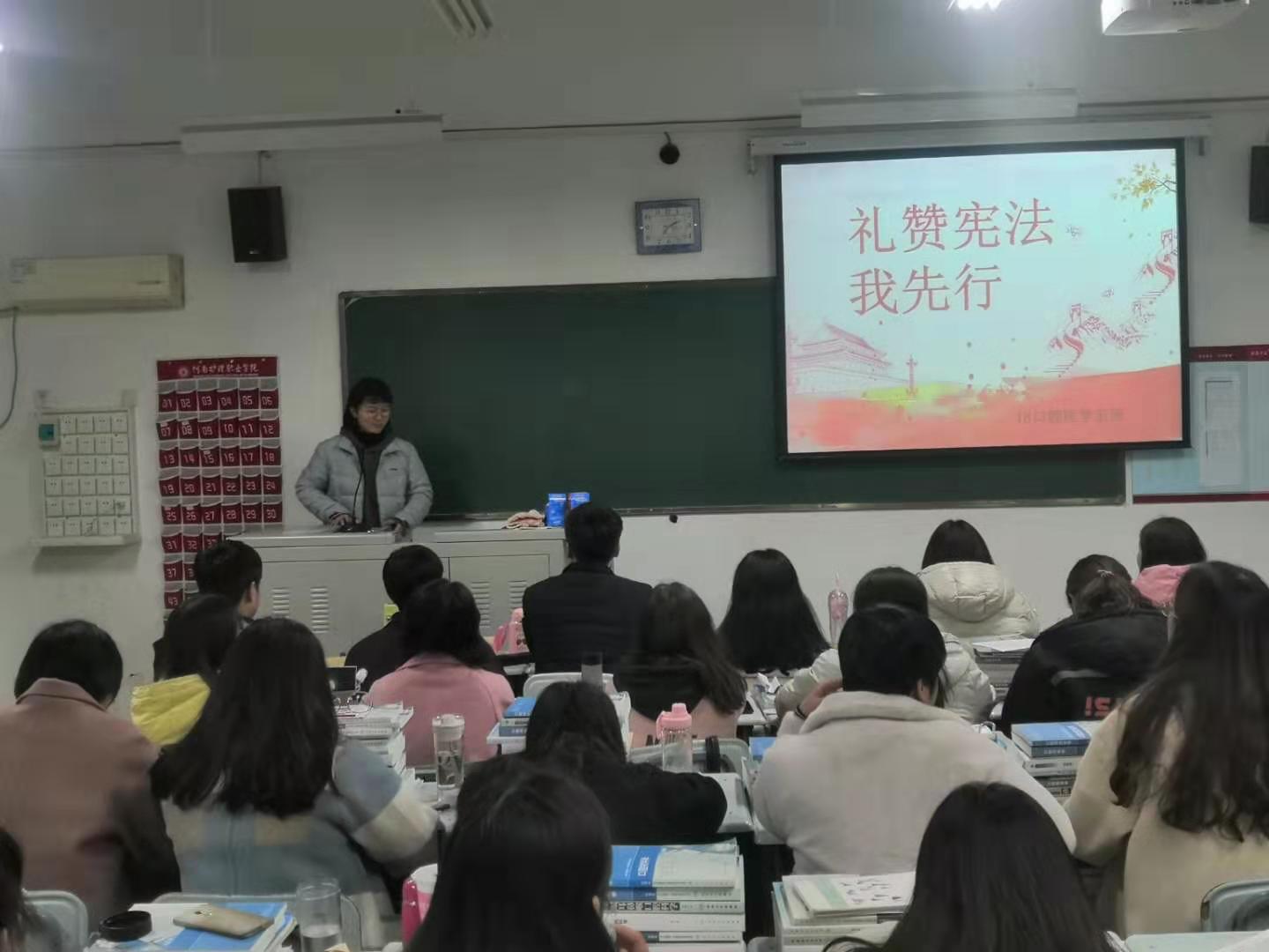 12月1日晚,各班级召开以“礼赞宪法”为主题的班会,同学们对宪法有了更深刻的认识,学会了知法、懂法、守法。