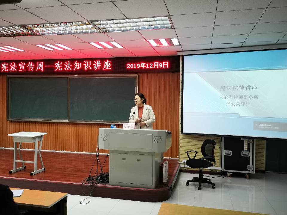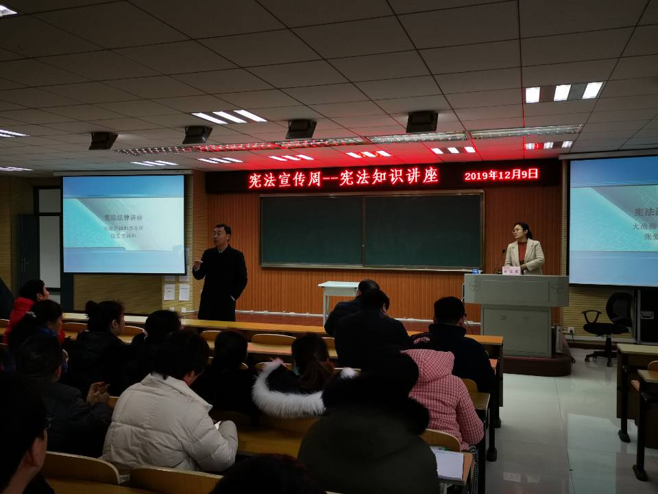 今年是中华人民共和国成立70周年,12月4日是党的十九届四中全会胜利召开后迎来的第一个国家宪法日,也是第六个国家宪法日,为进一步深化以宪法为核心的中国特色社会主义法律体系宣传教育,不断提高全民宪法和法治意识,大力弘扬宪法精神,进一步增强教职工的法制意识,根据星空XK体育宪法宣传周活动方案,我院邀请张爱英老师对全院教职工进行宪法知识讲座。