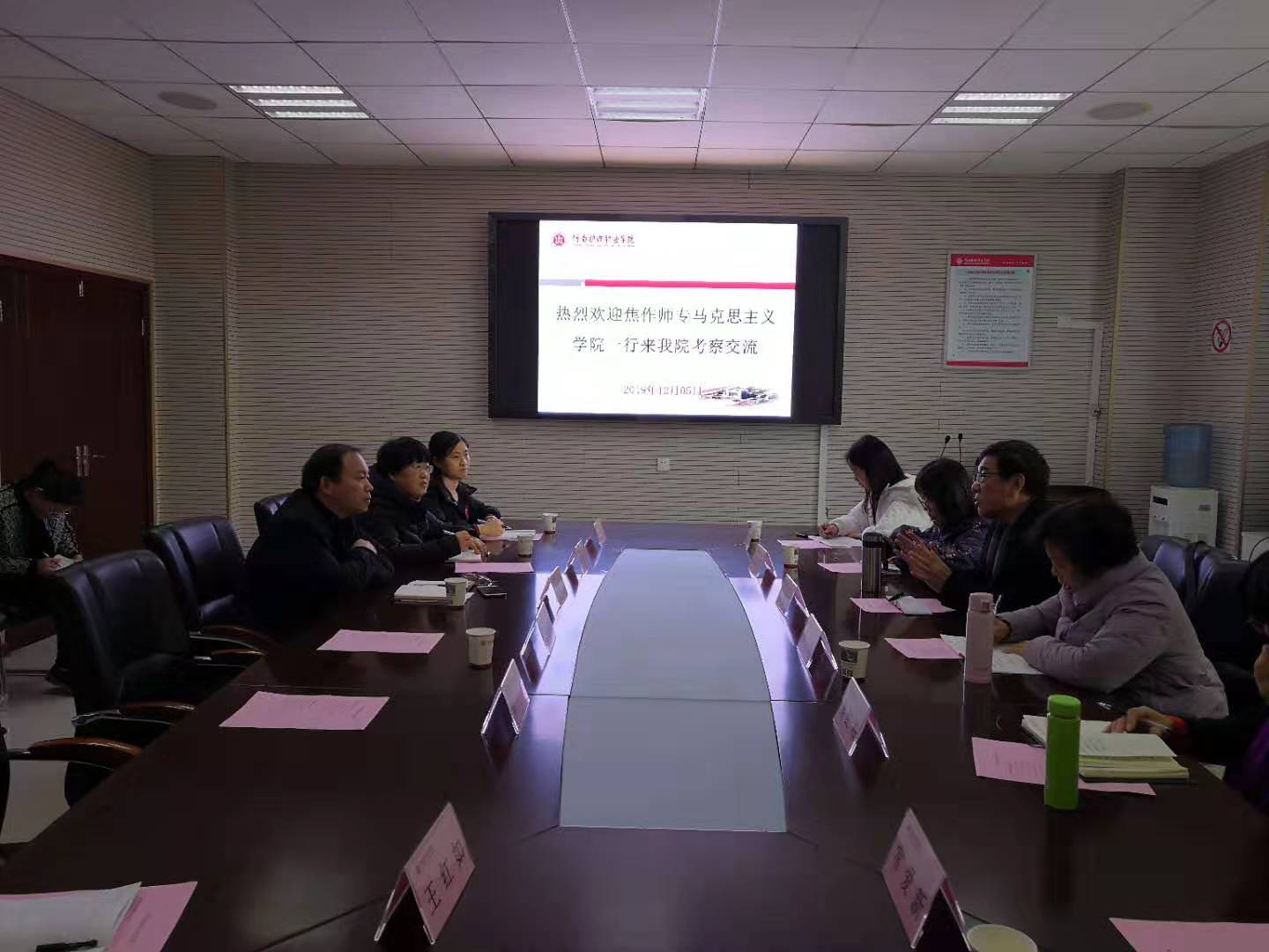 12月5日上午,焦作师专马克思主义学院副书记韩小荣一行6人来我院思政部考察交流,我院党委副书记、工会主席胡景团致欢迎辞,思政部副主任张艳林、各教研室主任及部分教师代表参加了交流会。