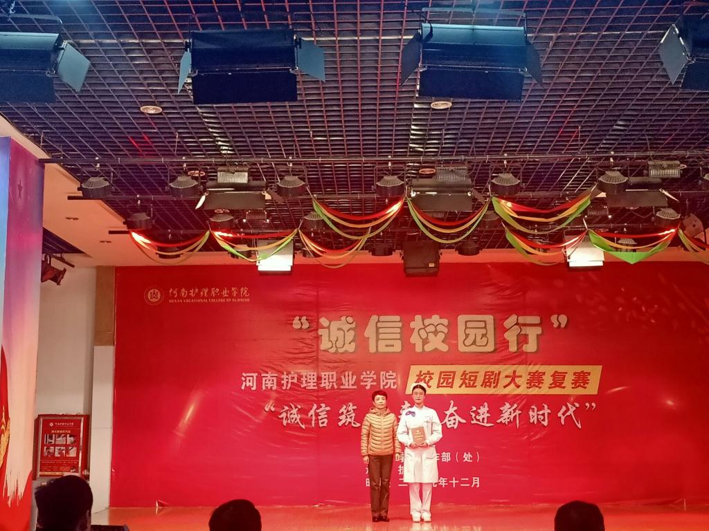 为落实立德树人根本任务,加强对学生资助政策、征信知识和金融基础知识的普及宣传教育,培养广大学生诚实守信、知恩感恩、自立自强的优秀品质,促进诚信校园文化建设,我院于12月11日在餐厅4楼举办“诚信校园行”校园短剧大赛。院长郭茂华、学生处处长李艳芳、各系党总支书记及部门负责人出席大赛,近200名学生代表观看了比赛。