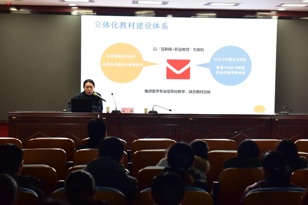 为进一步推进校本教材编写工作,12月26日下午,我院特邀人民卫生出版社(以下简称“人卫社”)医学教育中心编辑张峥、海珊作校本教材编写专题培训。院长郭茂华出席会议,参与教材编写的教师、教务处工作人员参加会议。会议由教务处处长朱秀敏主持。