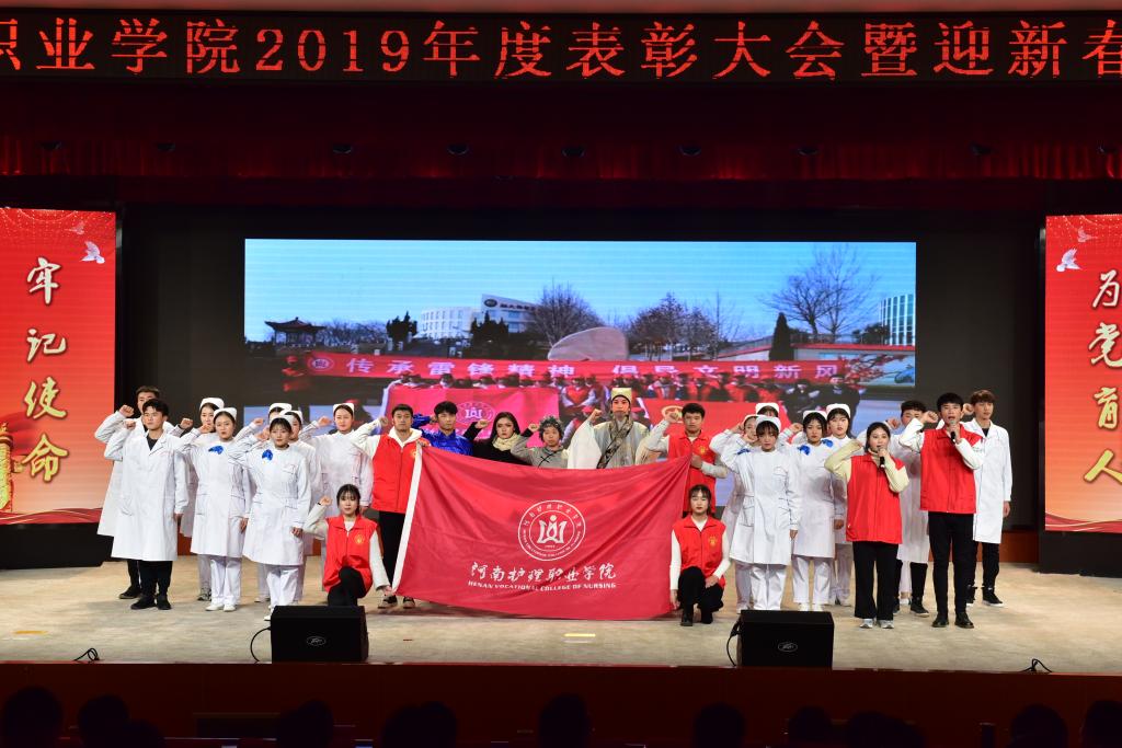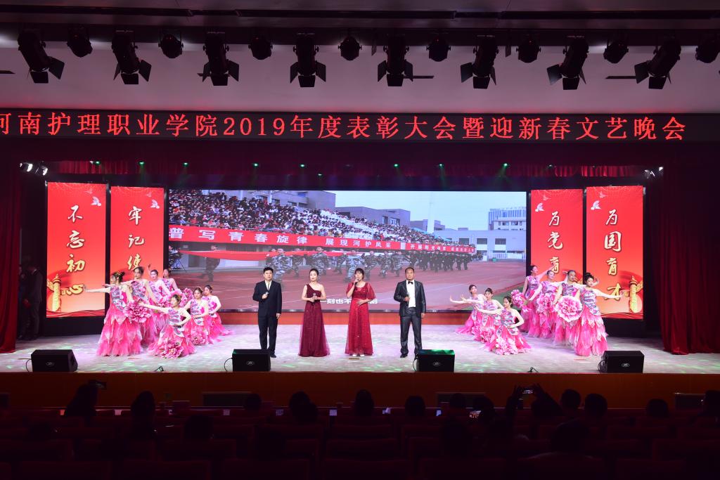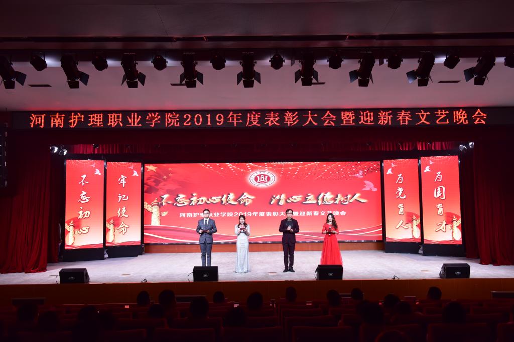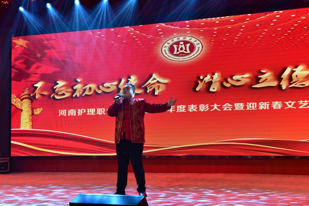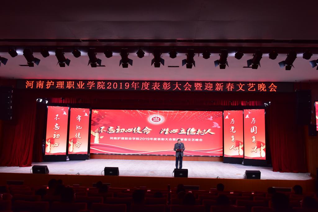 学院党委书记杜天信致辞,杜书记代表学院领导班子,向全体师生员工致以真挚的问候,向离退休老同志、教职工家属、广大校友和所有关心支持学院建设与发展的各级领导、各界朋友,致以新年的问候和诚挚的祝福!杜书记指出,过去一年里,学院以习近平新时代中国特色社会主义思想为引领,坚持社会主义办学方向,全面贯彻新时期党的教育方针和卫生健康工作方针,不断深化改革创新,落实立德树人根本任务。学院“不忘初心、牢记使命”主题教育成效明显,办学条件稳步提升,专业结构持续优化,内部管理更加规范,育人质量日益提升,办学规模不断扩大,社会影响力更加广泛,实现了速度、质量、规模、效益协调高质量发展。参赛师生在全国、全省各类技能竞赛中捷报频传,为学院增了光、添了彩。在此,向过去一年大家共同奋进、取得的成绩,表示热烈的祝贺!杜书记希望全体教职工继续坚守“为党育人、为国育才”的初心和使命,紧紧围绕立德树人根本任务,抢抓发展机遇,奋力攻坚克难,汇聚起推动卫生健康教育事业前进的强大力量,迈上新起点、开启新征程、建设新河护,做推动学院事业发展的坚定者、奋进者、搏击者,努力向着建设美丽河护、魅力河护、和谐河护、活力河护的美好愿景不懈奋斗,朝着建设特色鲜明、优势突出、国内知名的医学院校阔步前行,为实现学院“升本”目标打下坚实基础,为推动我省卫生健康事业发展做出新的更大的贡献!