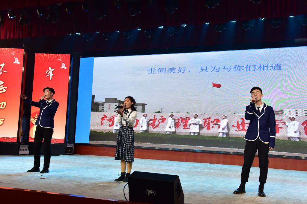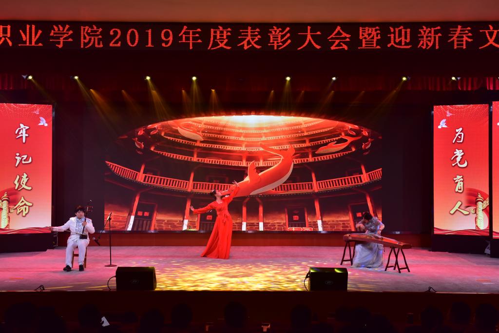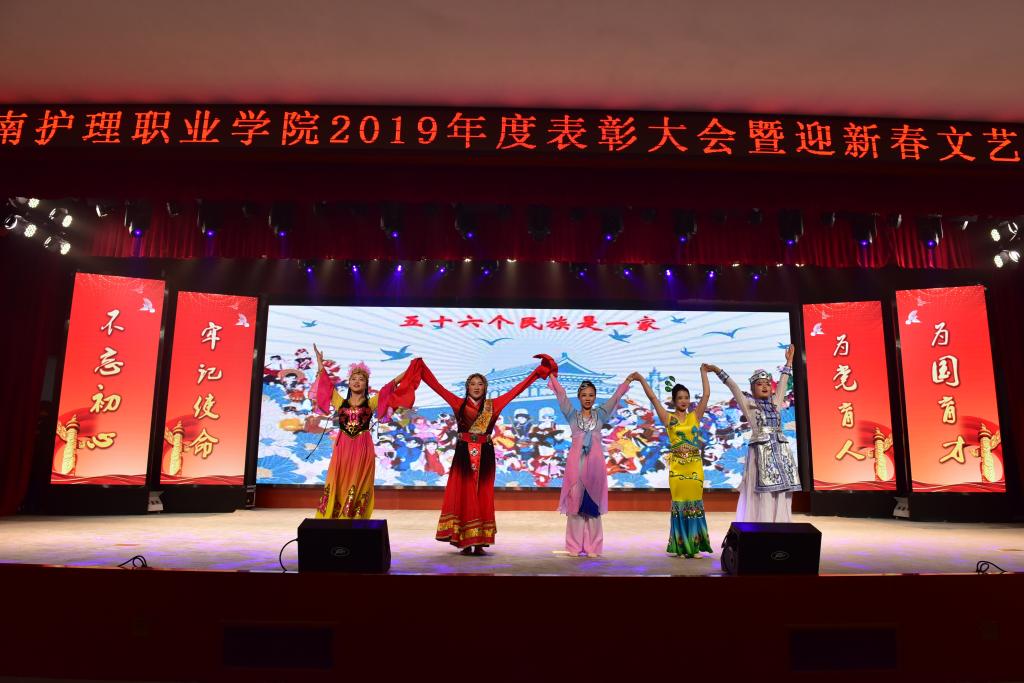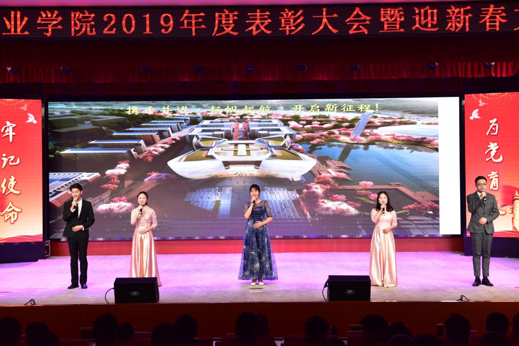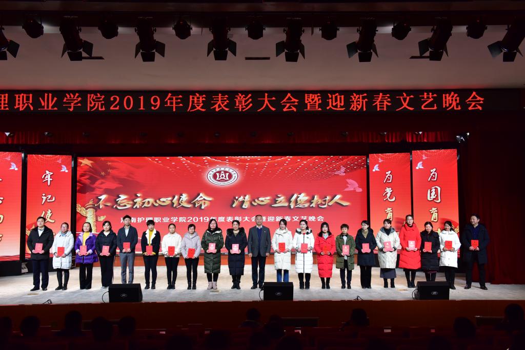 学院党委书记杜天信致辞,杜书记代表学院领导班子,向全体师生员工致以真挚的问候,向离退休老同志、教职工家属、广大校友和所有关心支持学院建设与发展的各级领导、各界朋友,致以新年的问候和诚挚的祝福!杜书记指出,过去一年里,学院以习近平新时代中国特色社会主义思想为引领,坚持社会主义办学方向,全面贯彻新时期党的教育方针和卫生健康工作方针,不断深化改革创新,落实立德树人根本任务。学院“不忘初心、牢记使命”主题教育成效明显,办学条件稳步提升,专业结构持续优化,内部管理更加规范,育人质量日益提升,办学规模不断扩大,社会影响力更加广泛,实现了速度、质量、规模、效益协调高质量发展。参赛师生在全国、全省各类技能竞赛中捷报频传,为学院增了光、添了彩。在此,向过去一年大家共同奋进、取得的成绩,表示热烈的祝贺!杜书记希望全体教职工继续坚守“为党育人、为国育才”的初心和使命,紧紧围绕立德树人根本任务,抢抓发展机遇,奋力攻坚克难,汇聚起推动卫生健康教育事业前进的强大力量,迈上新起点、开启新征程、建设新河护,做推动学院事业发展的坚定者、奋进者、搏击者,努力向着建设美丽河护、魅力河护、和谐河护、活力河护的美好愿景不懈奋斗,朝着建设特色鲜明、优势突出、国内知名的医学院校阔步前行,为实现学院“升本”目标打下坚实基础,为推动我省卫生健康事业发展做出新的更大的贡献!
