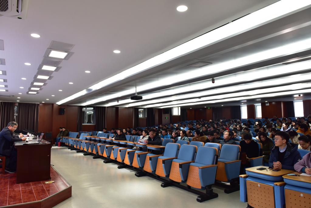 12月27日下午,根据省委高校工委主题教育工作部署,我院在学术报告厅召开“不忘初心、牢记使命”主题教育评估测评会及座谈会,面向我院党员干部、师生群众全面了解学院主题教育开展情况和成效,广泛听取意见建议并开展测评。省委高校工委第三巡回指导组组长丁松林、成员杨延杰到会指导。学院副科级以上干部、师生党员代表、党外高级知识分子等155人参加测评。