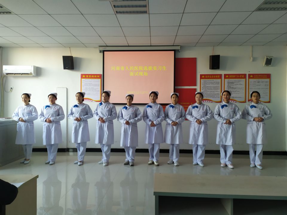 为顺利完成此次实习生选拔工作,护理系在学院领导的大力支持下,各部门通力配合,周密组织,充分准备,提前一周缜密部署选拔训练,坚持公开、公平、公正的原则,严格按照河南省人民医院的推选条件,精心从360名报名省医的优秀学生中挑选出能代表我院综合素质水平的180名学生参加院方的笔试和面试。笔试在教学楼进行,考场秩序井然,历时半个小时,面试选拔工作在护理楼211举行,学生们在面试中站立得体,思路清晰,语言精练,良好的风貌得到了医院专家的肯定。经严格的选拔,原本预计招生60名实习生,最终共有75名学生成功入选2019年河南省人民医院实习生。