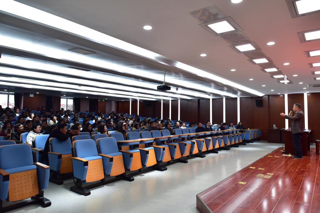 首先,郭院长对树兰医院及冯教授在学术方面成就进行了介绍,同时对冯教授来院表示欢迎。会上,冯教授对我院的实训设施、信息化教育、师资团队等建设赞不绝口,冯教授向大家简要介绍了树兰集团及树兰国际护理学院的办学历程、办学规模、办学理念等建设概况。随后结合自身的临床和管理经验对什么是文化与组织文化、组织文化的特性、组织文化建设的重要性、良好的组织下高绩效团队需要遵循的5C原则等方面进行讲解,尤其在讲到团队重要性时,形象地用“最强大的大象和凶猛的狮子会集体逃避蚂蚁军团”来说明团队在组织建设中的重要作用。冯教授的讲座旁征博引、内容翔实、贴近学院实际,她分享的护理管理新理念得到大家一致认可。