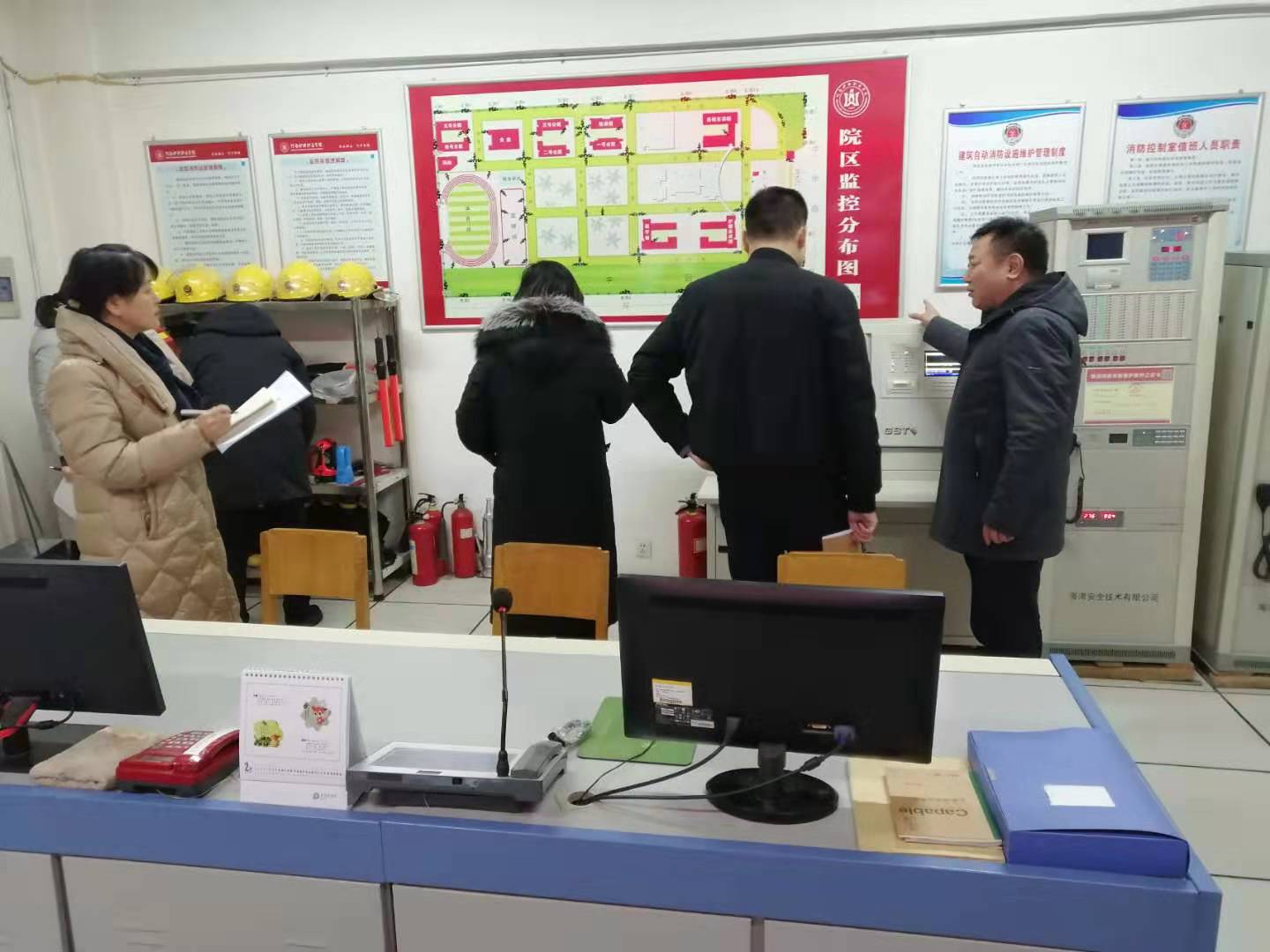 本次调研采取听汇报、查阅资料、察看现场、提问等方式,对2019年度学院的安全生产和消防工作进行全面调研。实地察看了学生宿舍、食堂、监控室、微型消防站、实验室等场所。