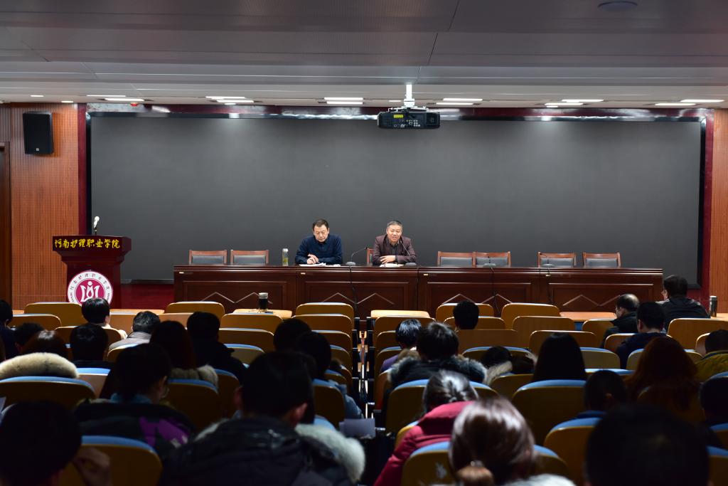 在总结讲话中,院长郭茂华高度肯定了2019年度工作,明确了2020年度工作思路。郭院长指出,2019年度学院在人员少,工作量重的情况下,全体教职员工坚守岗位、履行职责、尽心尽责、效果显著,圆满完成了各项工作。同时,郭院长明确了2020年工作思路,一要坚持问题导向,找标对标。各部门要深挖发展中存在的问题,在对标中找到解决问题、促进发展的钥匙。二要固强补短,特色发展。以主题教育为契机,扬长避短,奋力走出特色发展之路。三要扩大宣传,增强软实力。努力承办各级各类会议,传播河护好声音,讲好河护故事,为推动学院高质量发展提供有力精神动力,希望新的一年里大家能够做到想干事、能干事、干成事、不出事、好共事。对下一步工作,郭院长提出要求,一要坚持初心与定力。不忘初心、保持定力、善作善成,不为一时一事所惑。二要坚持改革与创新。抓住高职扩招百万的机会,增强改革创新勇气,进一步挖掘学院增长动力。三要坚持仁爱与奉献。继续发扬“开放、创新、仁爱、奉献”的河护精神,思新思变思发展,创新创业创一流。
