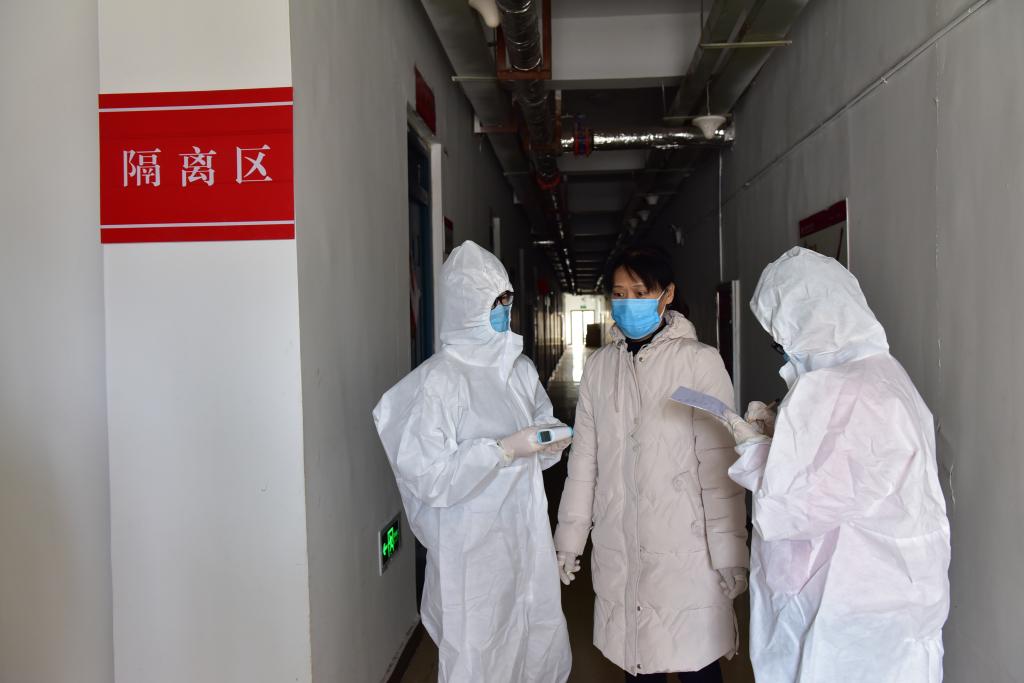 随后,全盲处置实施。科室负责人马上上报综合协调组组长王家桥副院长,由王院长通知各工作组组长并统一协调指挥,同时通知医疗管理组对该病人甄别确认为发热病人,对病人进行流行病学调查,启动校园疫情I级响应预案。疫情防控领导小组相关成员亲临现场指挥,布置警戒线,对病人工作地点、上午工作涉及的相关地点进行消毒处理,对其所有接触人员迅速医学隔离等步骤紧张有序进行,向今天在校的所有值班人员公布疫情,做好自我防护,维护校园稳定。