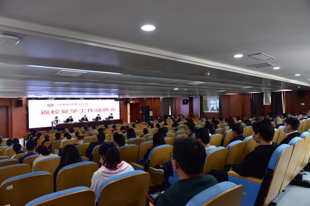 为进一步做好疫情防控期间第一批学生返校工作,4月27日下午,我院在一楼学术报告厅召开学生返校复学工作动员会,学院党委书记杜天信、院长郭茂华、副院长钟会亮、纪委书记张远出席会议,副科以上干部,保卫处、学生处、后勤处全体工作人员、全体辅导员以及保安、物业、餐饮公司负责人代表参加了会议。会议由党委副书记胡景团主持。会上,院长郭茂华依次传达学习了省教育厅厅长郑邦山、副省长霍金花等领导在全省学校疫情防控和安全管理工作电视电话会议上的讲话精神。
