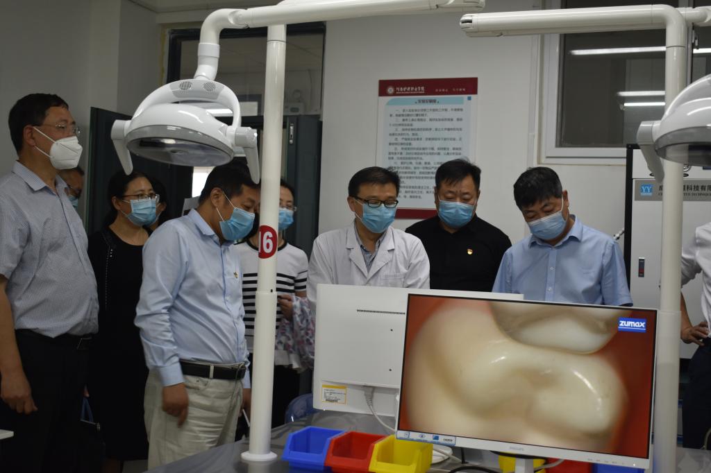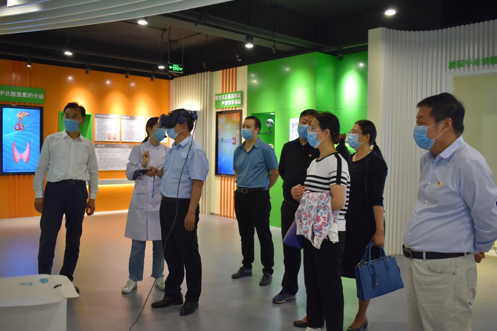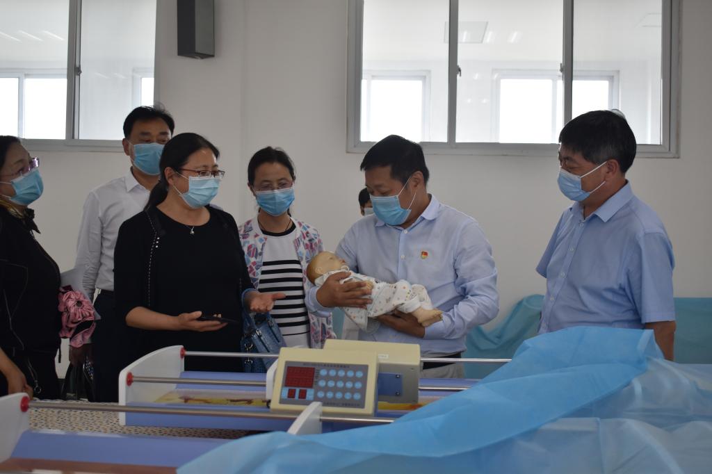 郭院长陪同张校长一行先后参观了学院护理实训楼、医技实训楼、老年智慧康养中心、国际教育系、多功能厅、图书馆、生命健康馆。一路上,双方不时就学院发展、学生培养、学风建设等问题交流讨论。郭院长每到一处都会耐心解答关于对方提出的招生就业、实践操作、返校复学等方面的问题,同时也认真聆听张校长在学院办学方面的经验。在心肺复苏实训室、模拟ICU病房、儿科实训室里、老年智慧康养中心等,郭院长亲自向大家演示操作要点。在国际交流馆,张校长对出国学生所展现出来的自信姿态、奋发有为的精神风貌、积极向上的工作干劲高度赞赏。在检验实验室、口腔实训室、病理实验室、内科实训室,张校长一行对我院完善的基础设施、优异的办学条件、先进的网络教学资源赞不绝口。在生命健康馆里,讲解人员生动有趣地讲解让张校长一行不时驻足询问,亲身体验,切身感受到了生命健康的重要性。