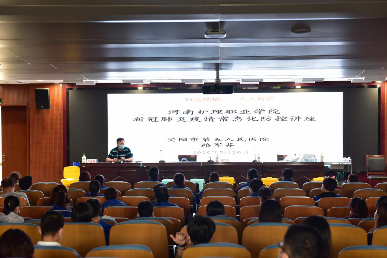 为规范学院疫情防控工作,指导集中隔离观察点建设和管理,提高疫情防控工作质量,确保我院返校复学工作顺利开展。医疗管理组于5月20日下午,诚邀安阳市第五人民医院感控科路军芬科长,为学院作新冠肺炎疫情常态化防控专题讲座。王家桥副院长、学院疫情防控专项组部分成员、医疗管理组全体人员、全体专兼职辅导员、部分教职工和后勤保洁人员参加讲座。讲座由护理系主任何敏主持。